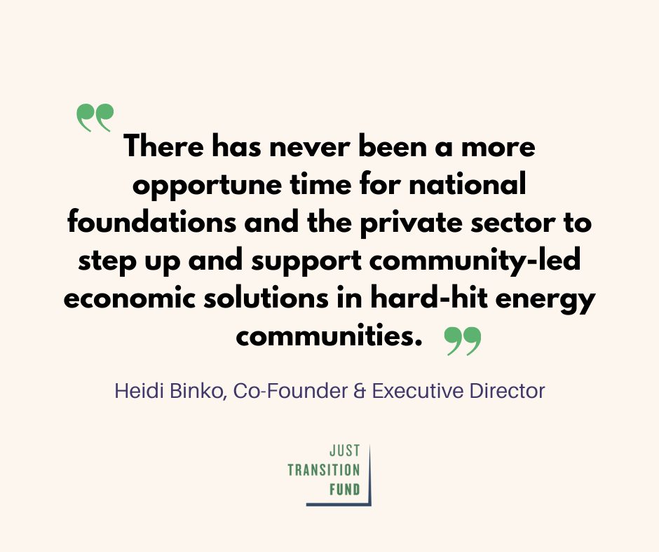 The Just Transition Fund partners with community-based organizations working to strengthen and diversify their local economies. As the only national fund solely focused on coal community transition, we are positioned to find, connect, and scale locally led initiatives.